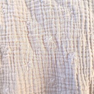100 percent cotton beachy top branded belle by kim gravel. It is very boho / linen vibes. It has small star fish all over it in the same beige linen color. It is a size 3XL. It has these rolled up caped sleeves. I got it for myself but after some consideration and trying it on, it is just not my vibe. It fits nice but I like the oversized linen fit and I just did not like the look of the sleeves on me. I hope someone else gets some use out of it. Let me know if you have any questions.