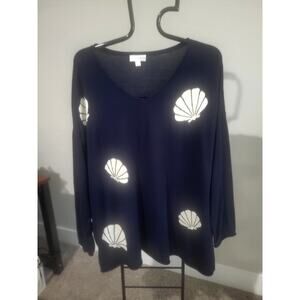 Belle Beach Kim Gravel Size 3X Navy Shell Sweater A683751 NWOT