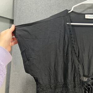 Belle Beach by Kim Gravel Regular Slub Knit Tie Front Cove Black M/L