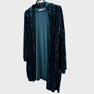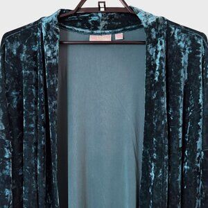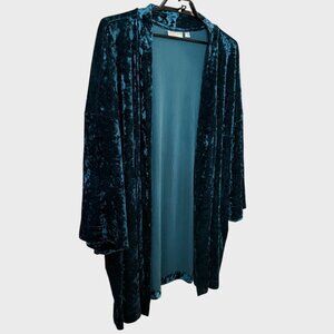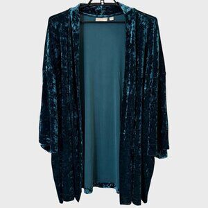 Belle Boho by Kim Gravel Crushed Velvet Topper Cardigan Teal Blue Women's 4X
