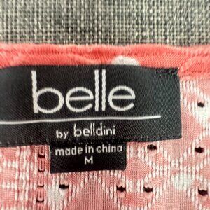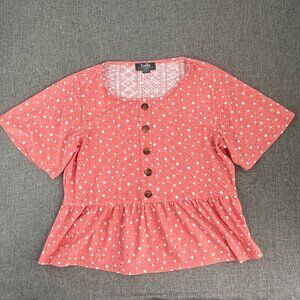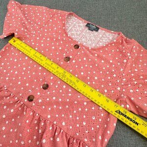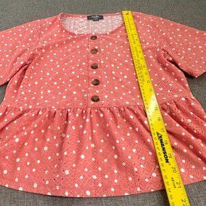 Belle By Belldini Peplum Top Polka Dots Peachy Pink Round Neck Wide Short Sleeve