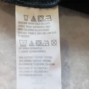 Materials: 56% cotton, 38% rayon/viscose, 6% spandex