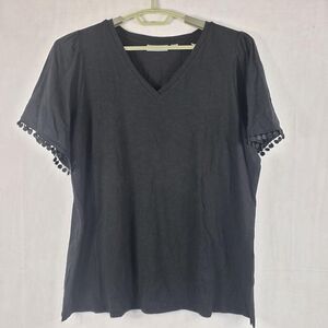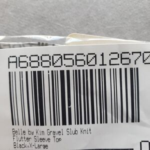 Belle By Kim Gravel Shirt Womens XL Black Slub Knit Flutter Sleeve V Neck Top