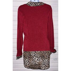 Belle By Kim Gravel Sz XXS Feather Knit Sweater & Woven Printed Combo Blouse EUC