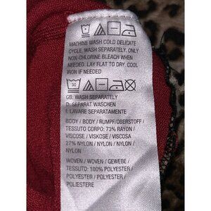 Shoulder to hem (front) = 21” sweater; 27” woven contrast