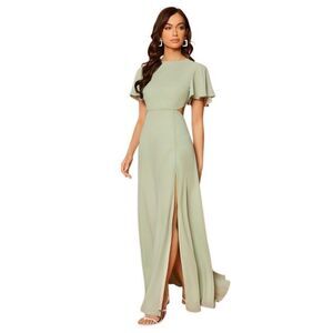 SHEIN Belle Cut Out Back Split Thigh Mint Green Maxi Gown. Perfect Bridesmaid Dress, Formal Evening, Prom Dress, Wedding Guest option for Black Tie or Cocktail events. Flattering arm coverage with classy cut outs at waist. Lined and flowy for comfortable and elegant fit. Only worn once — received tons of compliments. Women’s size large (8-10).