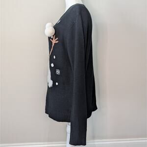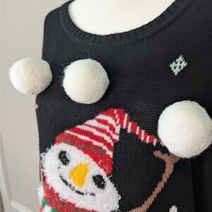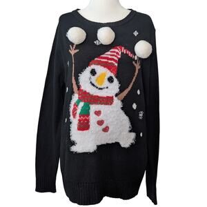 Belle Du Jour Black Knit Long Sleeve Juggling Snowman Ugly Christmas Sweater XL