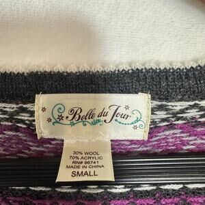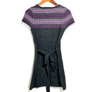 Belle Du Tour Small Wool Fair Isle Tied A-Line Sweater Dress V-Neck Pockets Knit