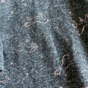 This cuddly sweater will keep your little girl both stylish and warm. The knotted hem and cropped sleeves makes this top unique as do the bronze glitter/ shimmering unicorns dotted all over. No stains or marks! Let me know if you have any questions.