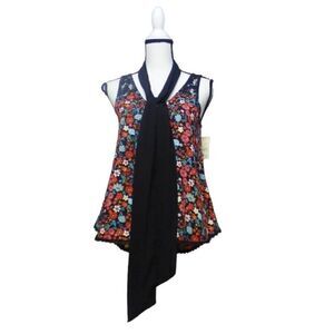 Belle Du Jour Junior’s Lace Trim Printed Scarf Top , Black-multi- M