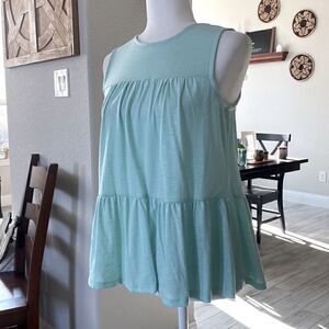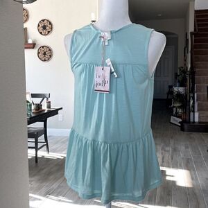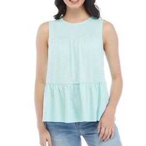 Belle Du Jour Tiered Tank Top Aqua NWT Crew Neck Sleeveless Boho Tier Spring S
