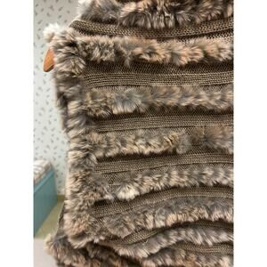 Belle Fare Rabbit Fur Knit Fringe Vest Shawl Wrap Boho Cozy Winter Layer