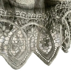 Belle France Boho Lagenlook Sage Embellished Lace Tunic Knit Chiffon Top Size L