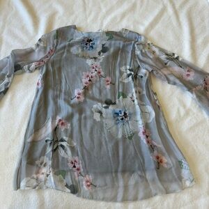 Lightweight & delicate blouse from Belle France. Made in Italy. Silk / viscose blend material. Size M. Pit to pit 19”. Length 27”. Lined. 3/4 sleeves, bell style.