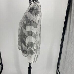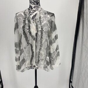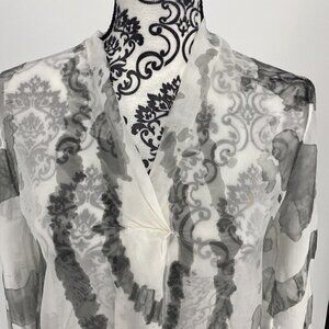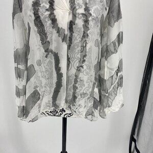 Belle France White Gray Sheer Silk Blend Sheer Cover Up. Roll Tab Sleeves. Sz M