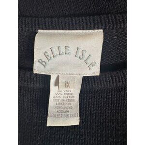 The Belle Isle Poinsettia Holiday Sweater in size 1X is a unisex, black, cotton blend garment with a festive appeal.