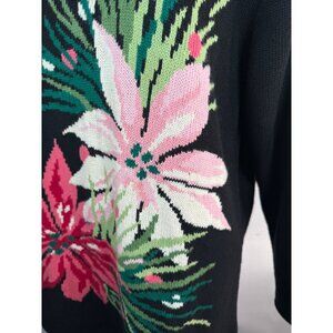 Belle Isle Poinsettia Holiday Sweater 1X Black Cotton Blend