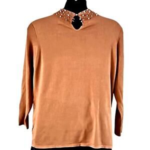 Belle Kim Gravel Faux Pearl Beaded Choker CutOut Sweater Size 3X NWOT