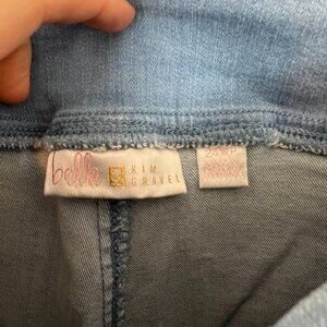 Belle Kim Gravel Pull On Capri Jeans Light Wash Stretch Frayed Hem