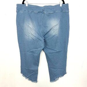 Belle Kim Gravel Pull On Capri Jeans Light Wash Stretch Frayed Hem 24WP