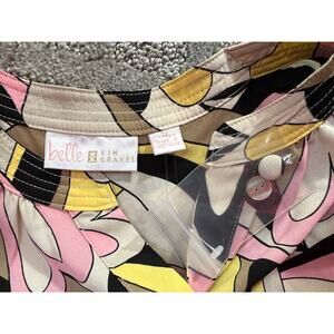 Belle Kim Gravel Top Blouse Medium Heart Print Retro Mod Button Shirt V-Neck New