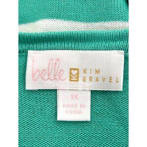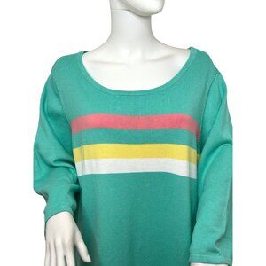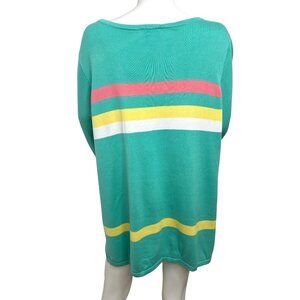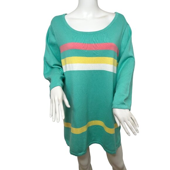 Belle Kim Gravel Tunic Top 1X Green Pink Yellow White Stripes 3/4 Sleeves Knit
