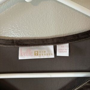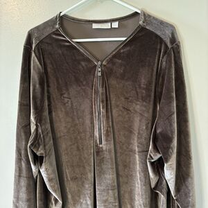 Belle Kim Gravel Velvet Signature Zipper Top Java Chocolate Pullover Sz 4X
