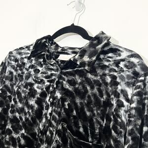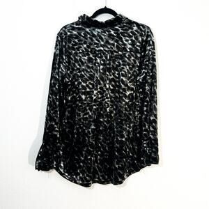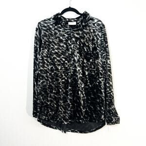 Belle Kim Gravel Velvet Top Womens M Animal Leopard Print Metallic Whimsigoth Stretch Relaxed Button Up
