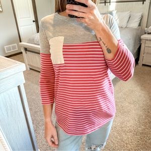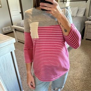 Belle Lily 3/4 Sleeve Pink & Gray Striped Pocket Tee Women’s Size Small
