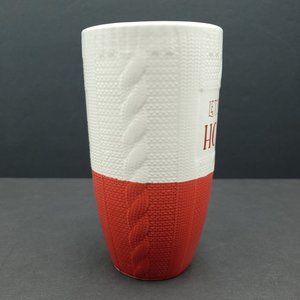 Belle Maison "Let's Stay Home" Tall Latte Mug / Travel Mug (no ild). This heavy mug is in very good pre-owned condition with a spec on the inside bottom. 6-3/8" tall and 3-3/8" across the top.