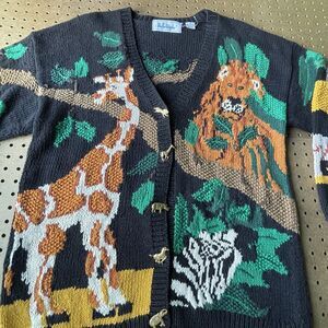 Belle Pointe Novelty Jungle Safari Cardigan Knit Sweater VTG 90s XL Women RARE