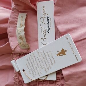 Belle Poque Retro Vintage Short Sleeve Off Shoulder Swing Dress in Pink Size S
