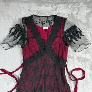 Belle Poque Victorian Ruffled Maxi Dress Medium Lace Mesh