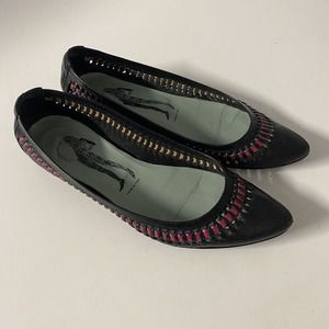 Belle Sigerson Morrison Ballet Flat Black Leather Woven Weave Point Toe …