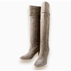 Belle Sigerson Morrison Knee High Cuffed Boots Sz 8 Brown Suede Block Heel