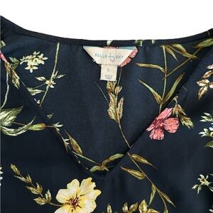 Belle + Sky Floral Bell Sleeve Blouse Size L Black Multicolor