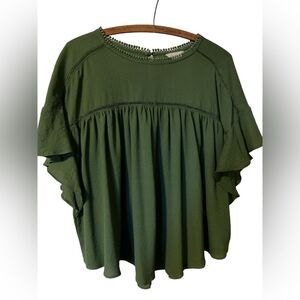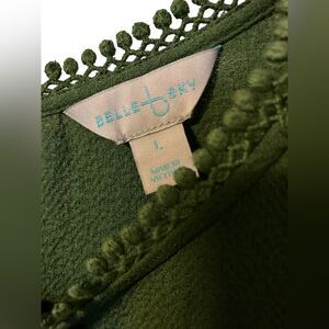 Green loose fit blouse by Belle Sky. Pretty miss green. Flowy, comfortable and stylish. Size L Pit to pit 20”-24”