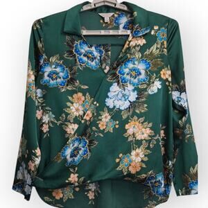 Belle + Sky Green Floral Blouse Women's Large Long Sleeve Button Front