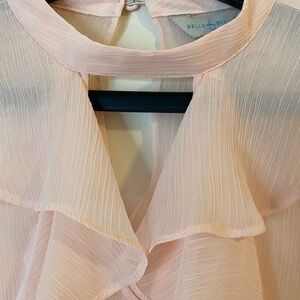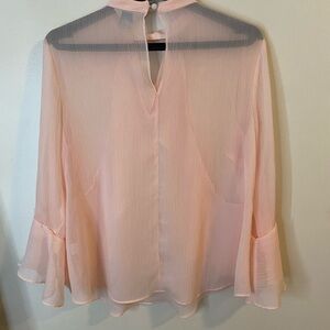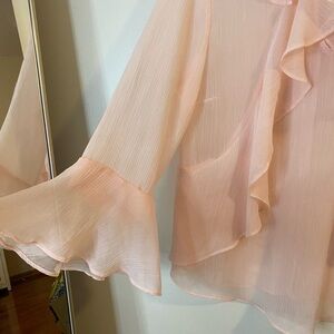 Belle Sky Light Pink Sheer Ruffle Blouse bell sleeves size Large