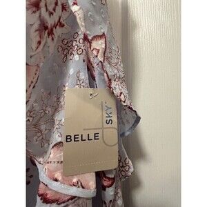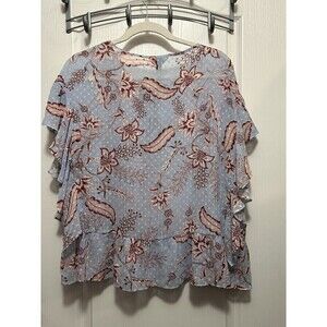 Belle & Sky Semi Sheer Blouse Floral Clip Dot Ruffle Flutter Sleeve Womens XL