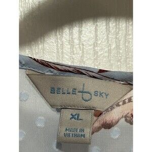 Add a touch of elegance and femininity to your wardrobe with this Belle & Sky blouse. The semi-sheer chiffon fabric with a floral pattern and ruffle accents creates a bohemian and cottagecore vibe perfect for summer, fall, or spring. The round neckline and flutter sleeves add a keyhole effect, while the pullover closure ensures easy wear. This blouse is perfect for casual or workwear occasions and comes in a size XL. The lightweight fabric and machine wash garment care make it easy to maintain. The blouse features a clip-dot design and is made of 100% polyester. The blue color and beach theme add a touch of love and fairy to your outfit.