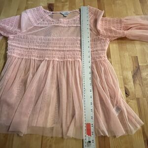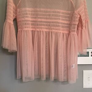 Belle & Sky Top Womens Size Small Sheer Mesh Flare Sleeve Pullover Peach Pink. BarbieCore