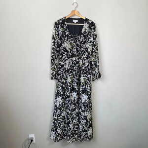 Belle Sky Women's Medium Balloon Sleeve Boho Floral Tie V-Neck Maxi Dress Black