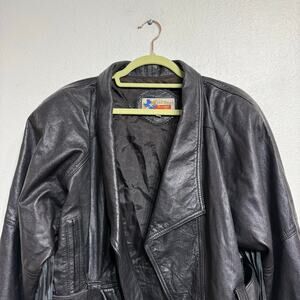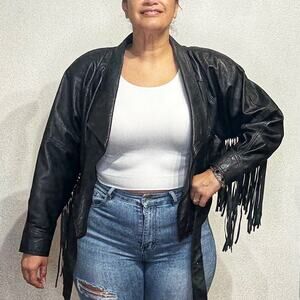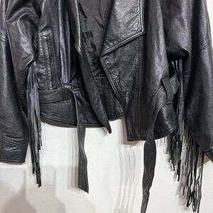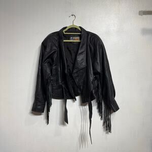 Belle Starr's Bootique Black Leather Cropped Vintage Fringe Moto Jacket Sz L