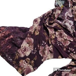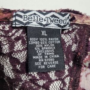 Belle Tweed Purple Floral Open Front Kimono Cardigan Lace Details XL