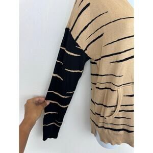 Belle by Belldini Camel Black Striped Hooded Knit Sweater | Size S