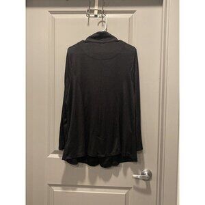So comfy and flattering! This semi-fitted black blazer from Belle by Kim Gravel features a deep V-neck, front pockets, and a single-button closure. Lightweight, stretchy knit (poly/rayon/spandex) with a soft, unstructured feel—perfect over jeans or dresses.