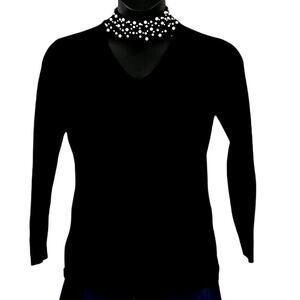 Belle by Kim Gravel Black Pearl Beaded Choker Cutout Sweater Women’s Size Small