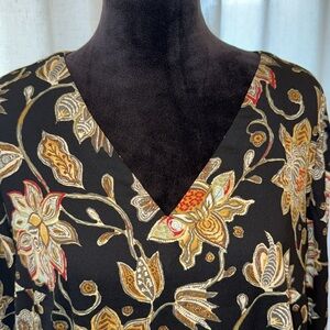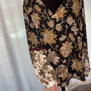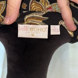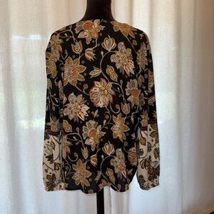 Belle by Kim Gravel Boho Floral Blouse Size Large Sheer Black Fall Top