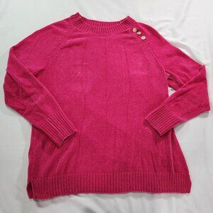 Belle by Kim Gravel Crewneck Pink with Gold Accent Buttons Medium. Lot E